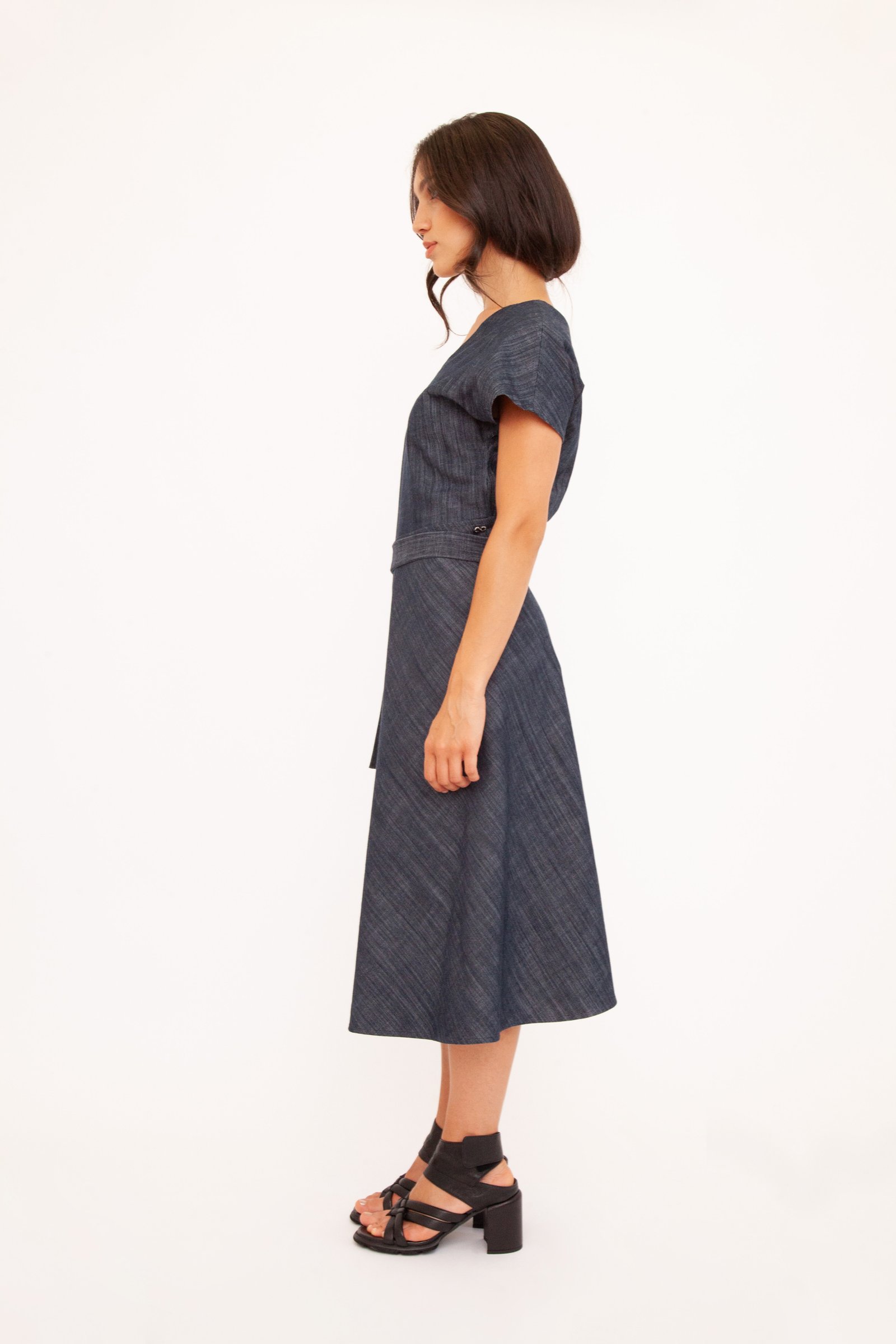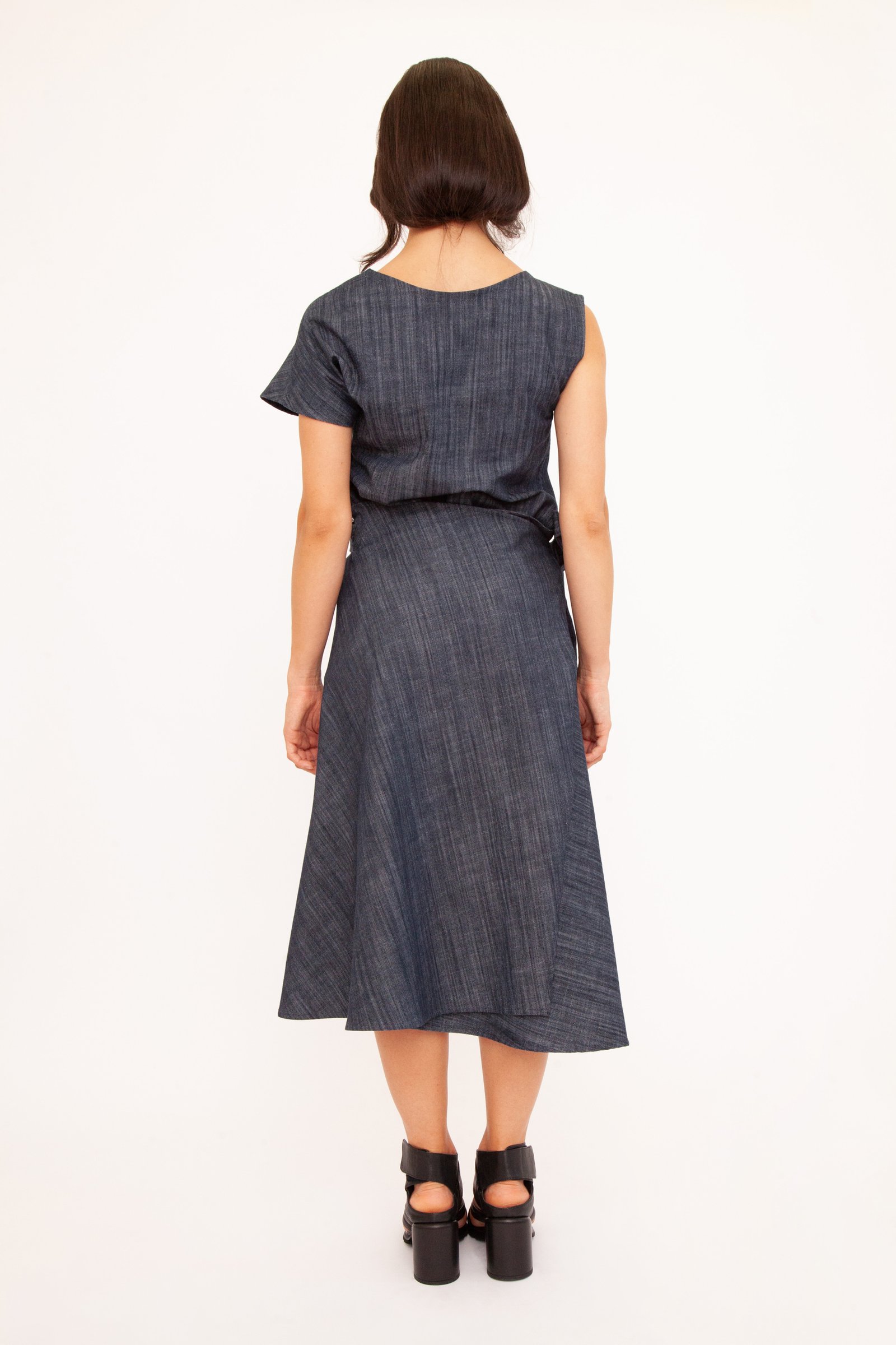 L’abito che si fa in quattro per te. Marghy è asimmetrico con una sola manica e genialmente reversibile: puoi indossarlo con lo scollo a V davanti o sulla schiena. Scegli la tua anima: in grintoso Jeans, o nell’iconica versione in Cotone stretch nero, arricchita da un inaspettato dettaglio materico “ciancicato”.