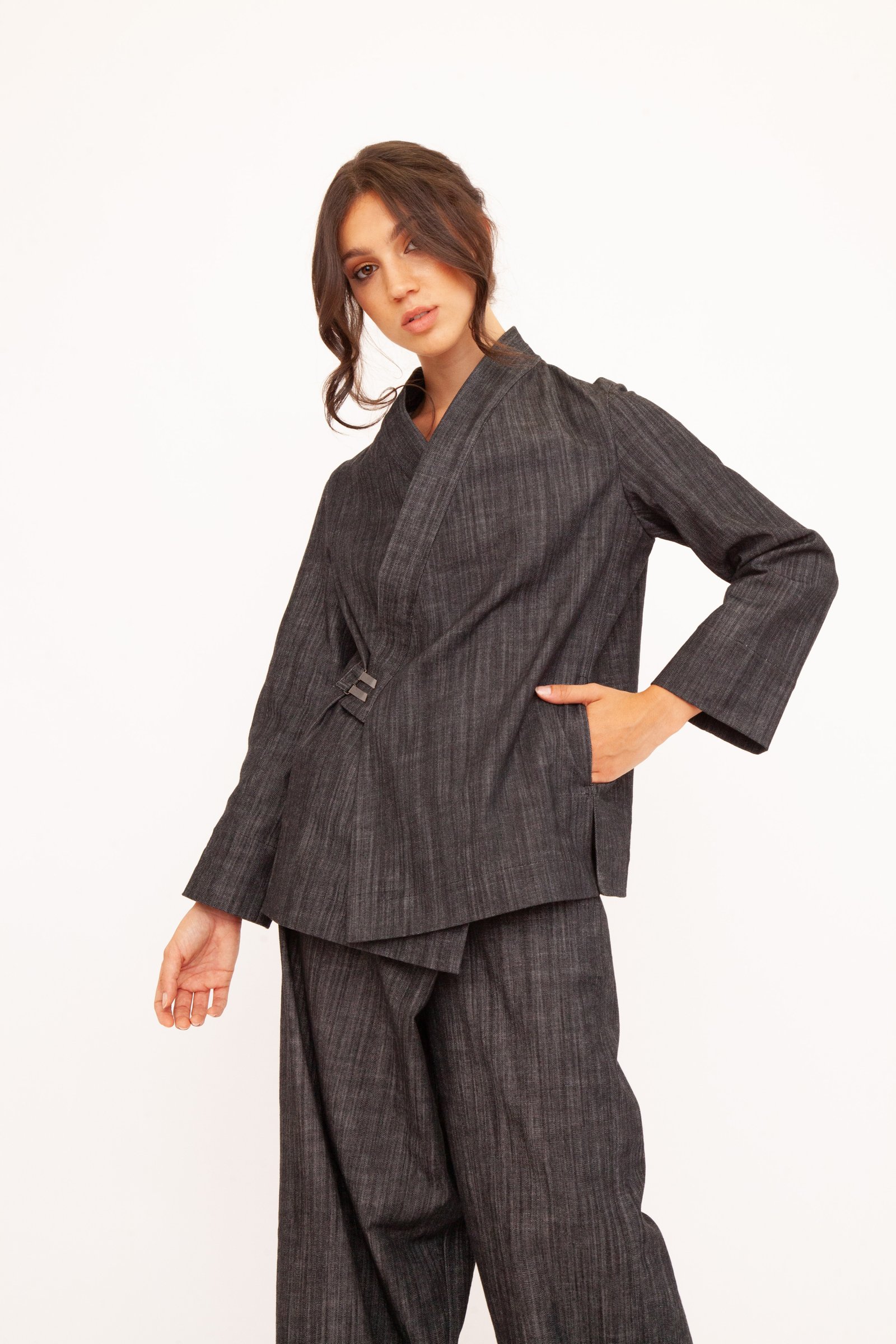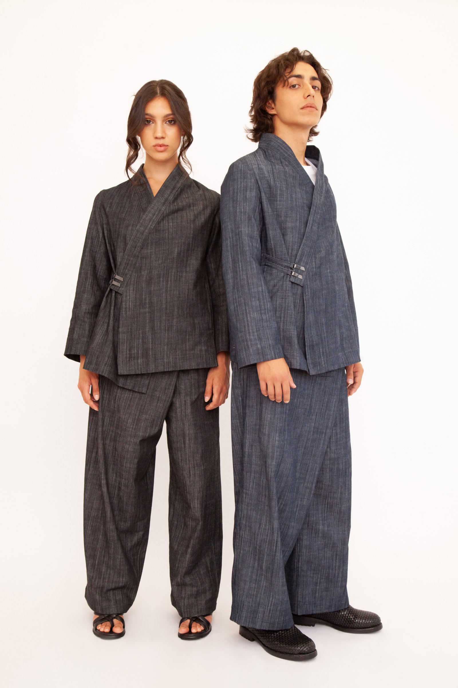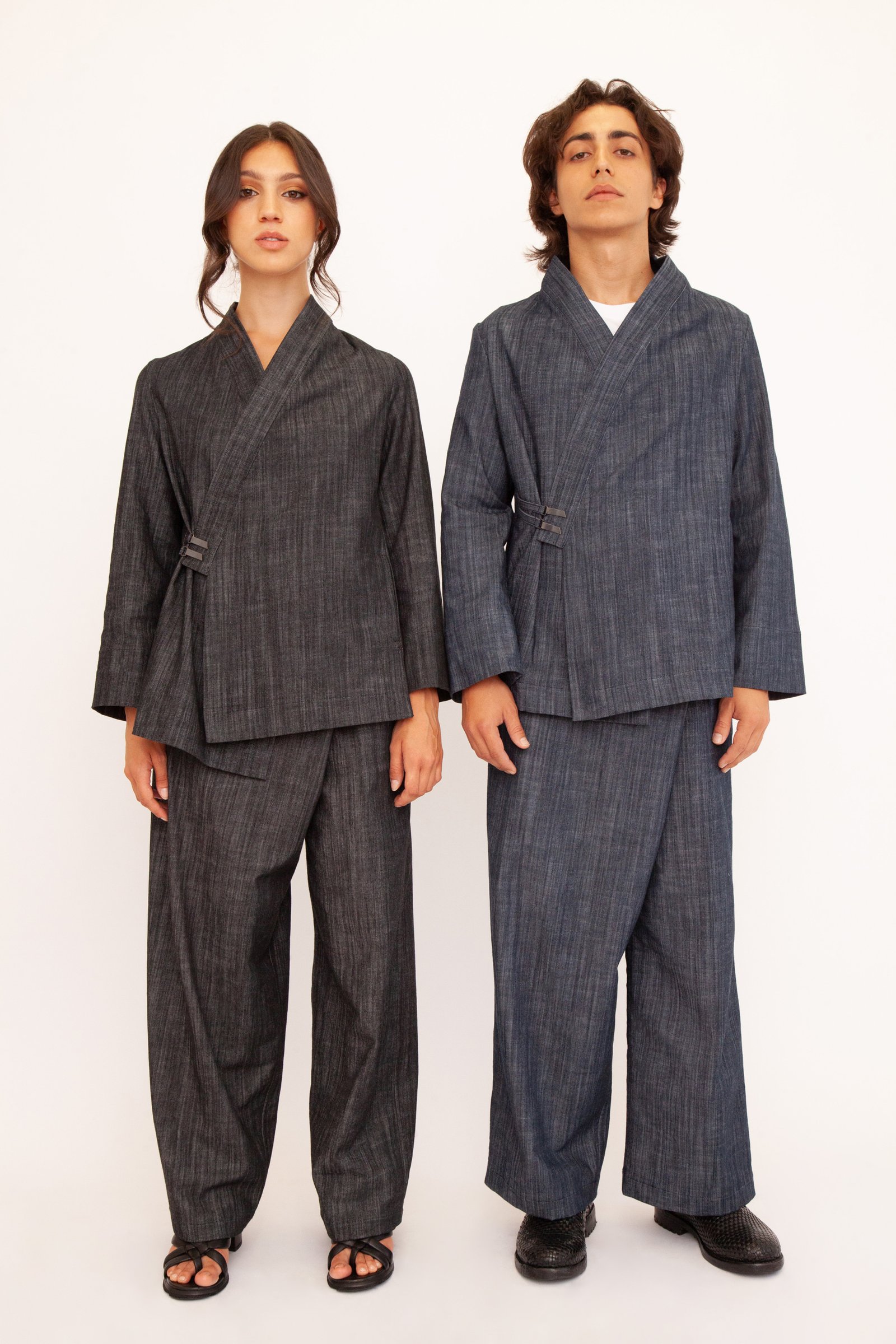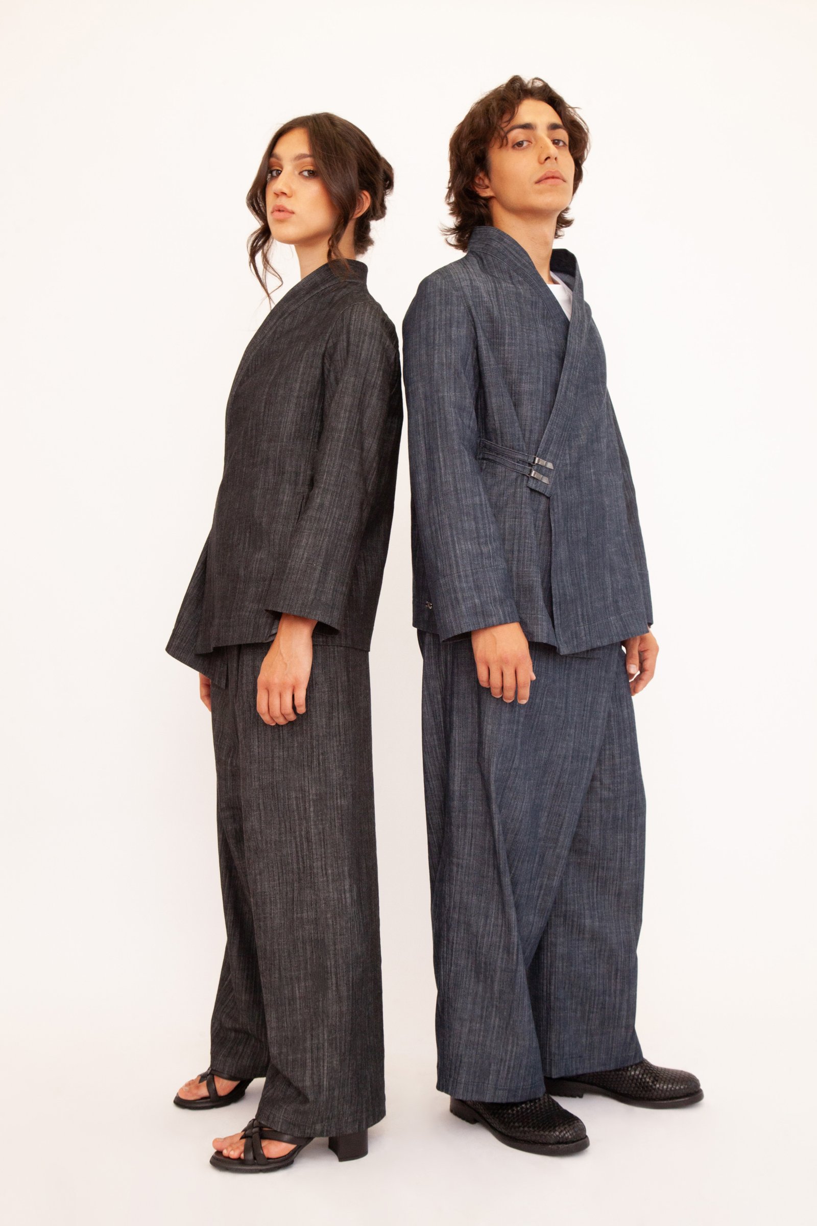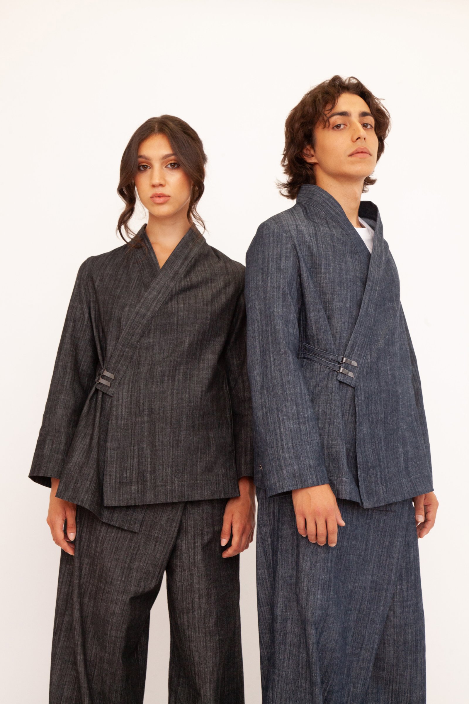 Un’opera di stile unisex e versatile che fonde l’eleganza casual con un design originale. Realizzato nei toni profondi del blu e del nero, questo kimono è perfetto su un jeans per un look metropolitano o abbinato ai suoi pantaloni per creare un completo sofisticato. La tua tela di stile personale.