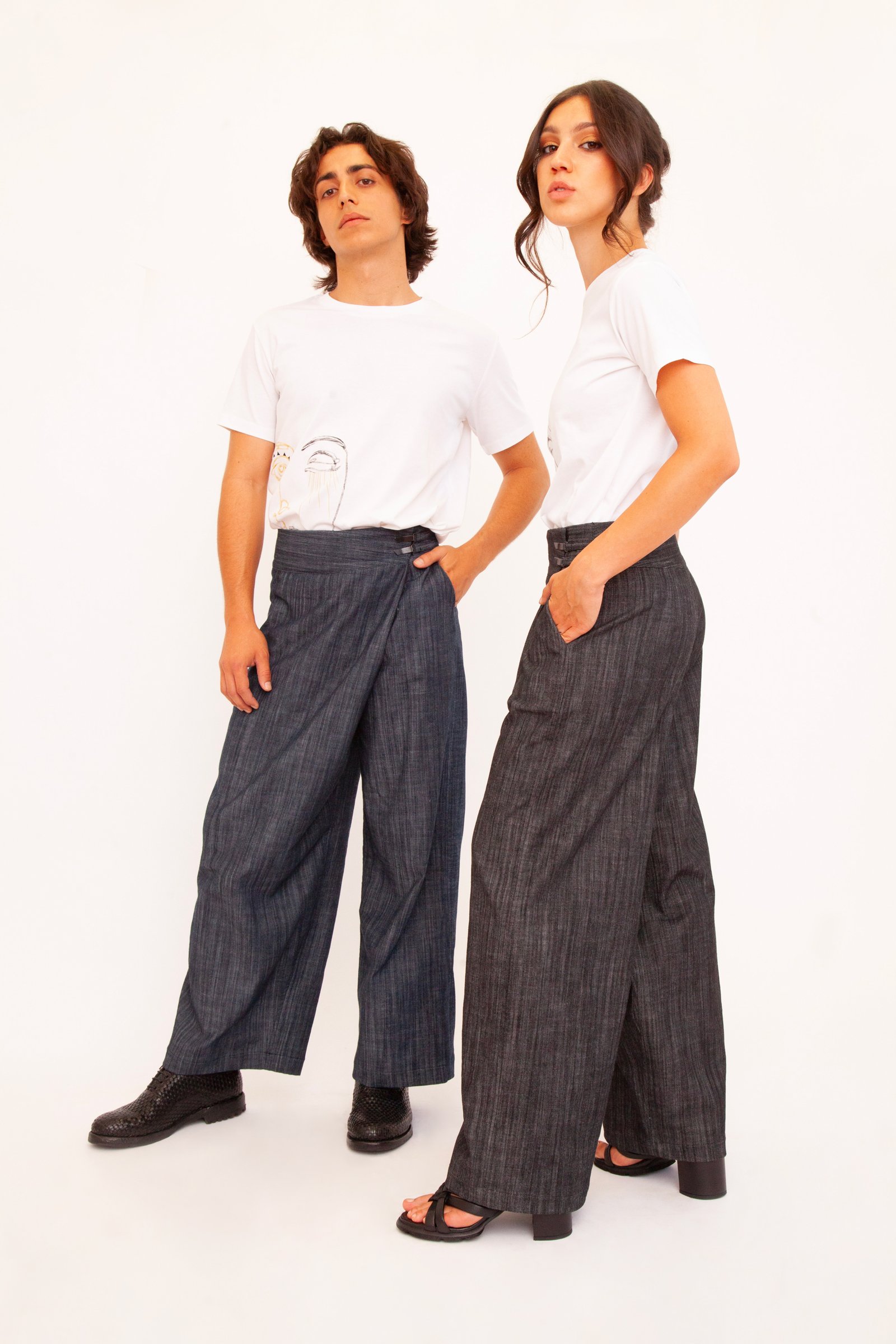 Il design è reso unico dall’audace pannello frontale sovrapposto, che crea un’asimmetria dinamica e scultorea ad ogni passo. Rifinito con una pulita chiusura sartoriale a doppio gancio e tasca invisibile, nasce come naturale estensione del Kimono Klimt, per un total look che è pura arte da indossare.